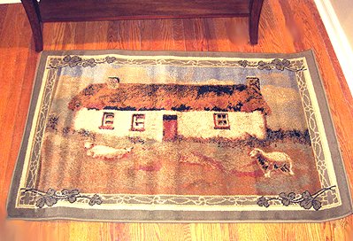 This is a stunningly beautiful high quality semi- plush rug featuring a quaint Irish Cottage. The colors are rich and charming and evoke the warm feelings of the Irish countryside. Warm golds, browns, greens are the main colors but there is some ivory and a lovely sky blue. A perfect rug for just about anywhere, the bedroom, bathroom, kitchen, dining room, foyer, entryway, living area. Please it anywhere that it can be admired makes a great gift for the holiday. You will be pleased and pleasantly surprised by the size and quality of the rug.