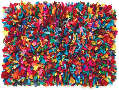 Extra weave's 2 by 3-foot chindi fiesta shag rug is hand woven from cheerful, bright colored cotton fabrics. it has a sturdy construction that promotes long lasting wear; it's ideal for high traffic areas because it is extremely durable and won't show stains. rug can be spot cleaned with a damp sponge, but for overall care professional dry cleaning is advised. by extra weave usa - a company that's been specializing in natural fiber floor coverings, for nearly 100-years. not for use over carpeting.