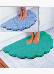 End your fear of slipping and falling on a wet bathroom floor. This super- absorbent, super-thick foam mat with a non-skid backing and pretty scallop design keeps your floor dry when you step out of the tub or shower. The self- drying mat is treated with a germicide to prevent fungi including athlete's foot. Made in the USA, it's guaranteed never to mildew, smell or rot. 30"L x 17"W x 1"D..